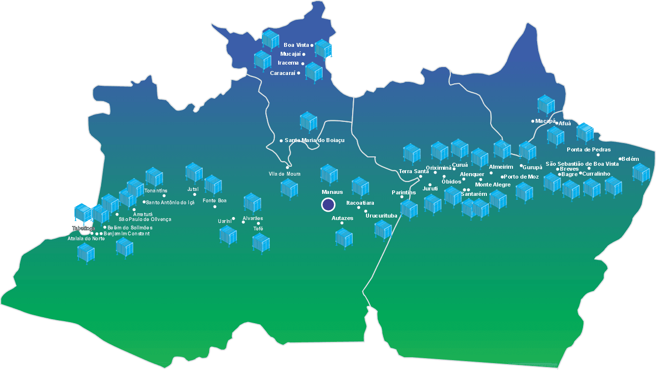 Infovia 01: Autazes (AM), Itacoatiara (AM), Manaus (AM), Parintins (AM), Urucurituba (AM), Curuá (PA), Juruti (PA), Óbidos (PA), Oriximiná (PA), Santarém (PA) e Terra Santa (PA).