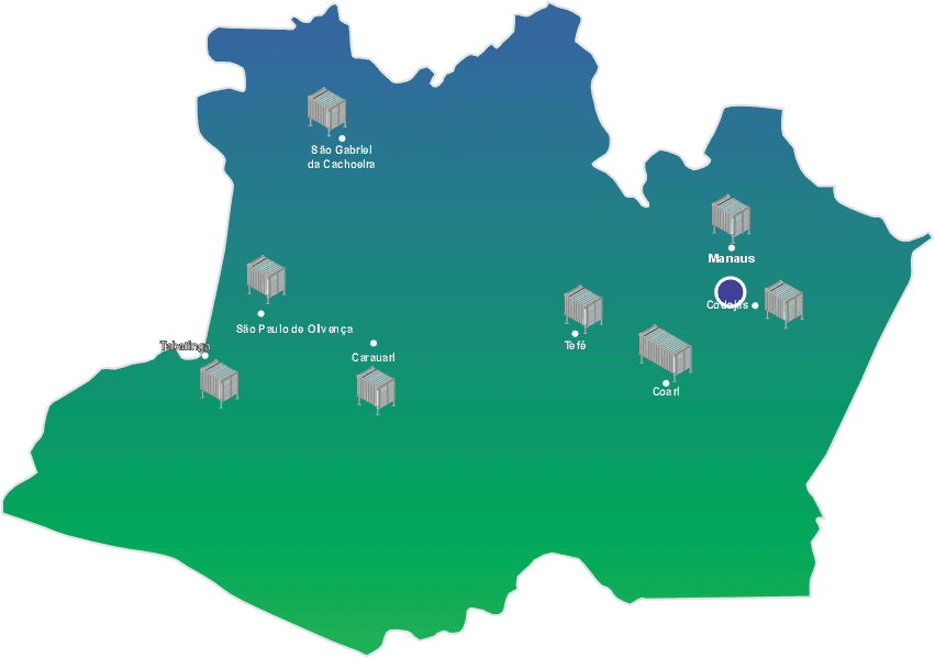Carauari (AM), Coari (AM), Codajás (AM), São Gabriel da Cachoeira (AM), São Paulo de Olivença (AM), Tabatinga (AM), Tefé (AM) e Manaus (AM).